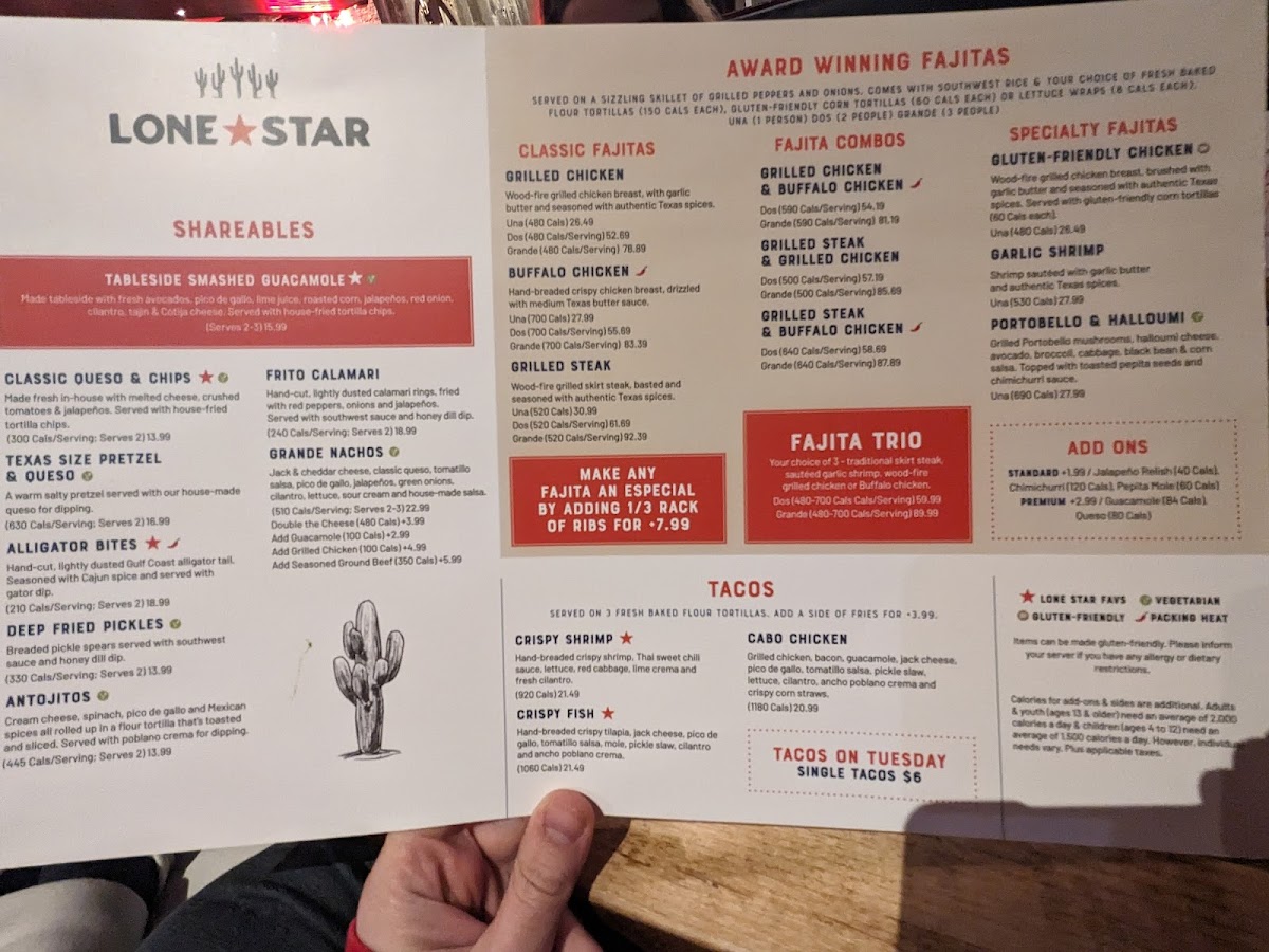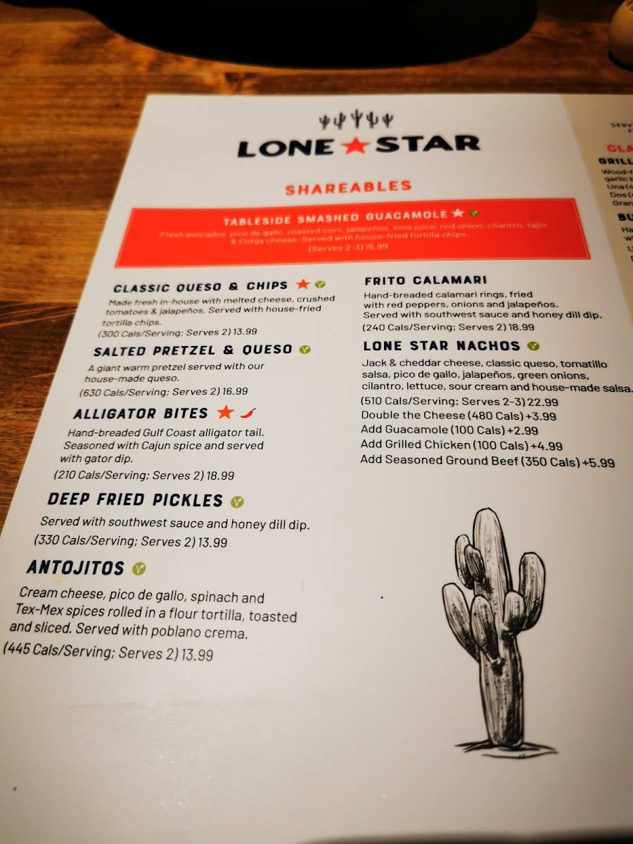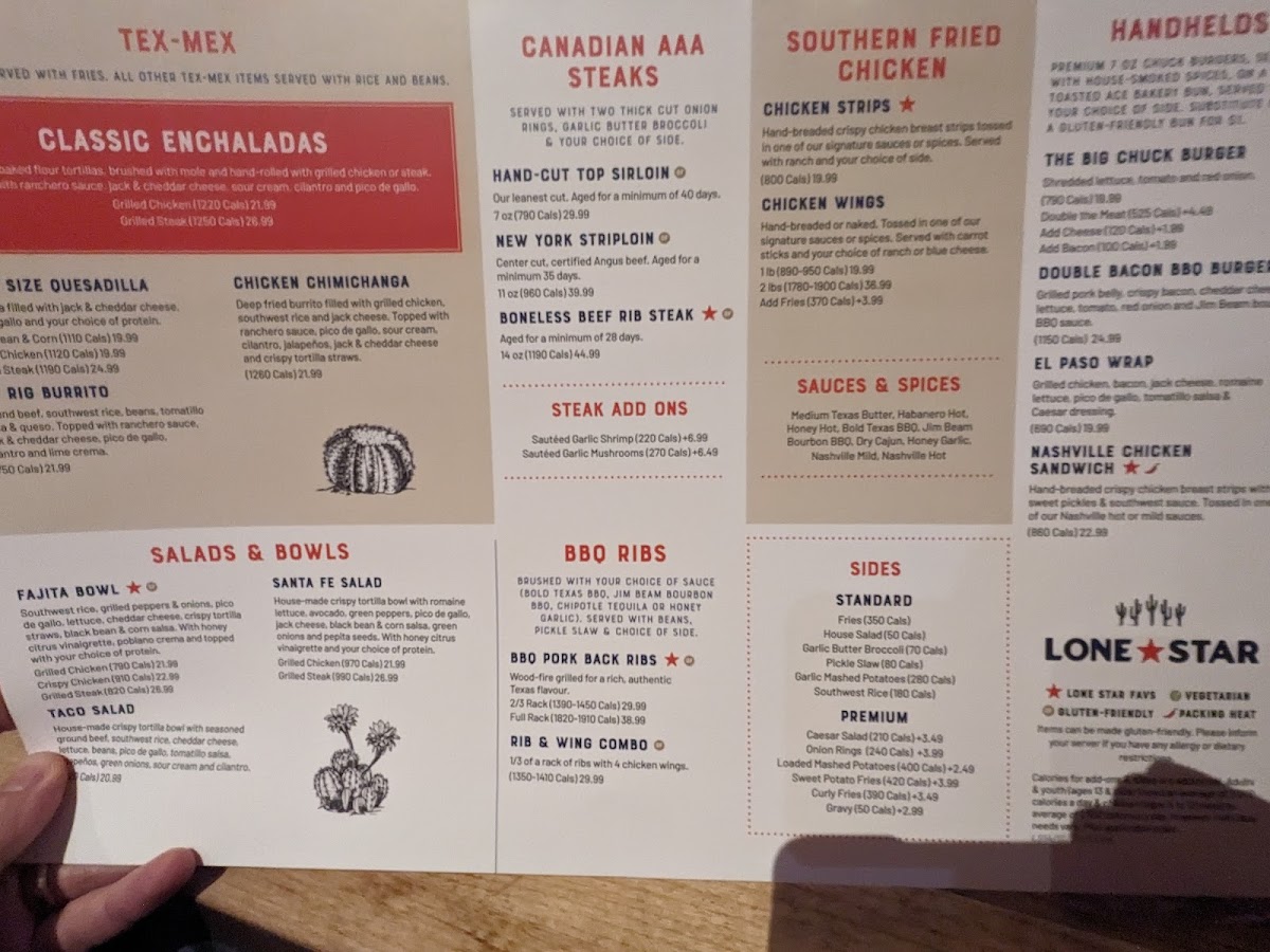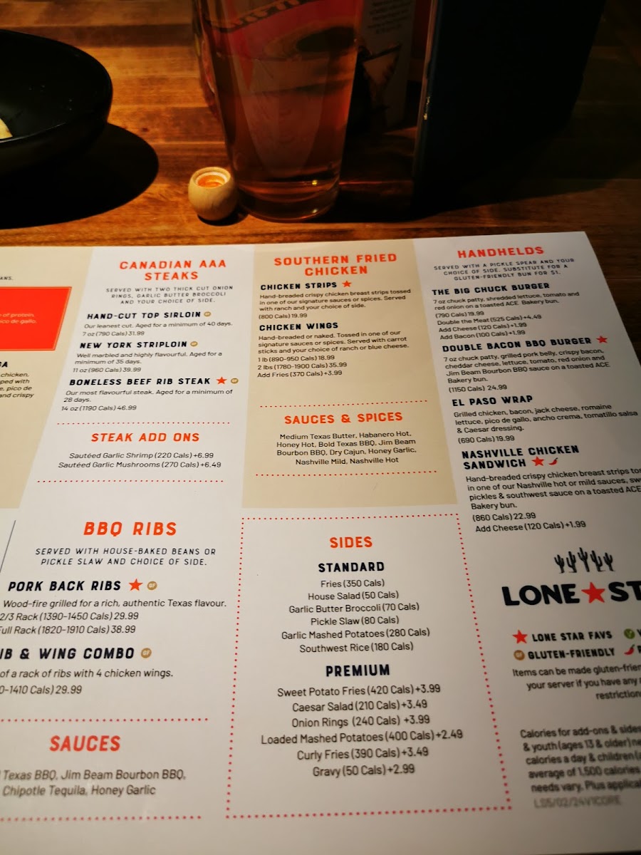From their Mar-Go-Rita's to their Fajita Packages, Fresh Tex Mex dishes, Chips, Dips & More, Starters, Southern Fried Chicken, Burgers & Sandwiches, to Steaks & Ribs, Lone Star Texas Grill Pinebush Rd has something for everyone. The menu also includes delectable sides, a kids menu, tempting desserts, a variety of beverages, and even non-alcoholic cocktail kits.