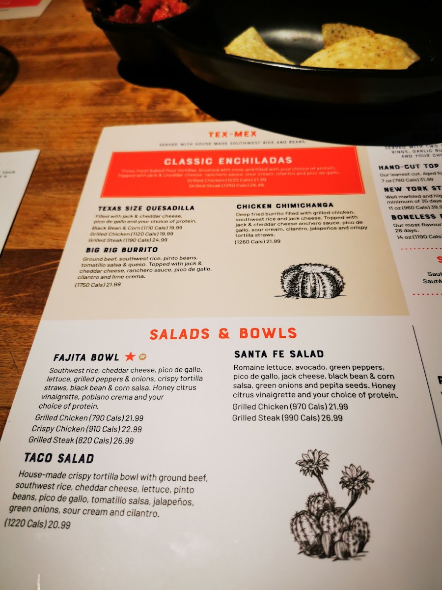 Great central location with plenty of free parking. Large dining area, I was happy to get a booth. Country/cowboy themed. Loved that there was free salsa and warm nachos to start. Friendly and helpful staff. The fajitas were well made and tasted delicious. The cherros were excellent and tasted fresh.